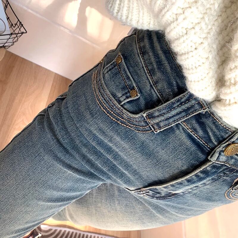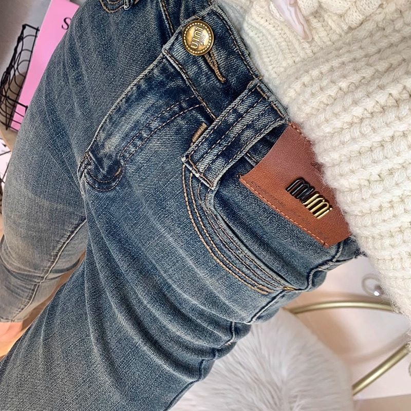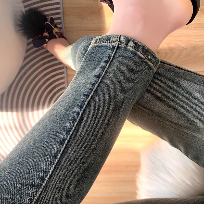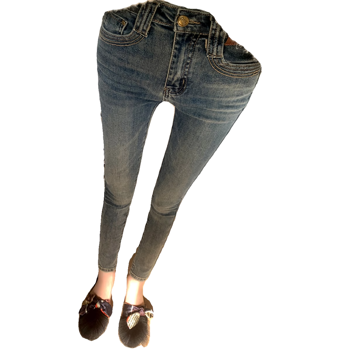 女九分弹力紧身铅笔裤 水泥灰小脚牛仔裤 秋冬加绒时尚 洋气特显瘦