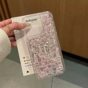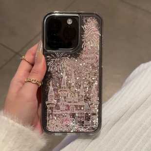 烟花和城堡银色流沙壳适用苹果16手机壳iphone15 13新11promax华为mate60pro女Pura70荣耀200小米14Reno12S19