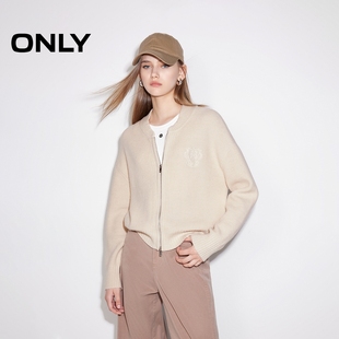 女 ONLY2025秋季 毛衣针织衫 学院风刺绣宽松落肩开衫 12513B001 新款