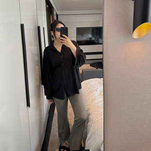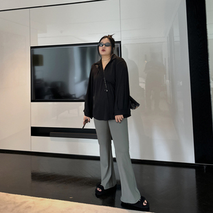 胖mm显瘦通勤简约 日常百搭直筒喇叭长裤 铅笔小鑫大码 女装