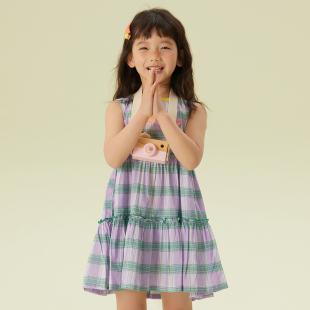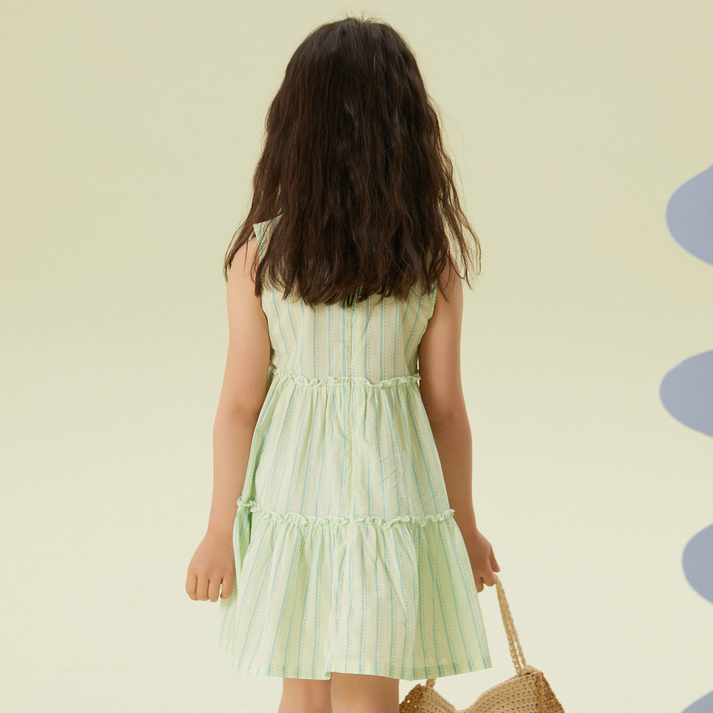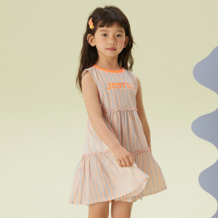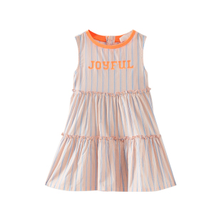 舒适百搭公主风裙子中长裙 无袖 moomoo童装 女童彩条连衣裙春时尚
