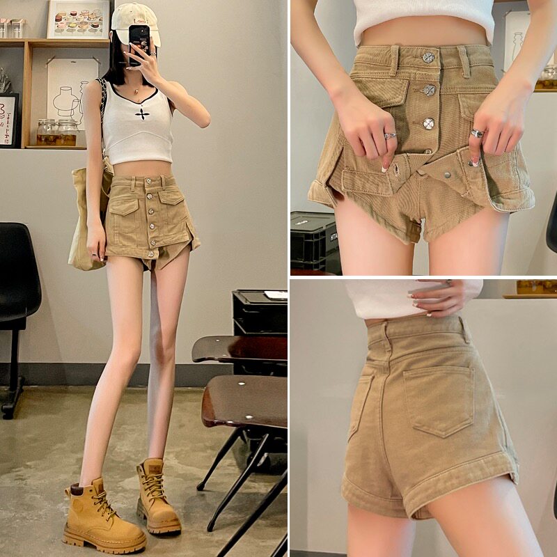 裙小个子短裤 辣妹防走光卡其棕色裤 子 春夏2026裙裤 牛仔短裙女春季