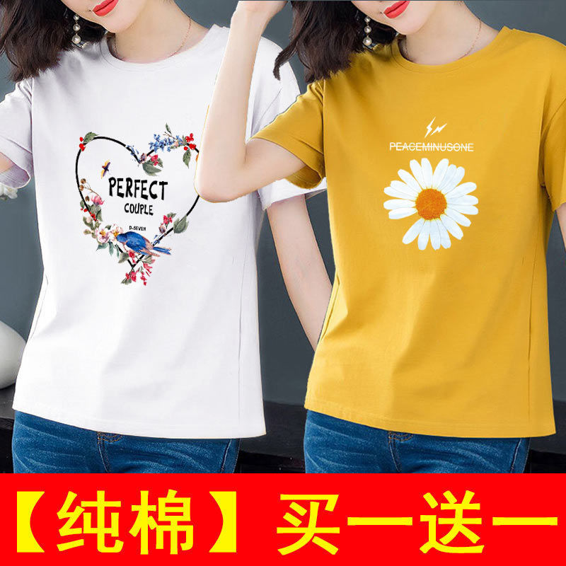 t恤女夏新款 大码 打底衫 两件装 上衣 宽松半袖 纯棉短袖 韩版 单 女装
