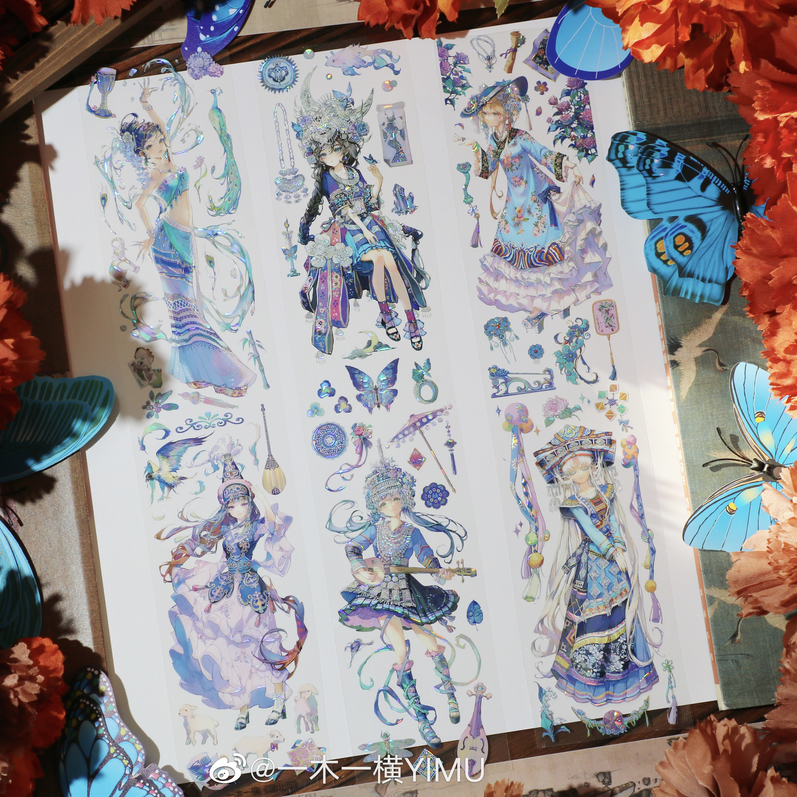 踏山河 一木一横人物胶带PET贝壳光民族风节日庆典手帐咕卡流麻素