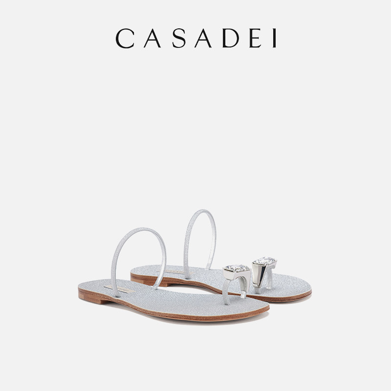 闪粉套趾平底凉拖鞋 CASADEI 鸽子蛋水钻凉鞋 博主同款 卡桑蒂