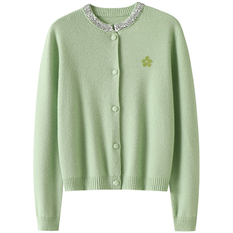 花朵提花针织开衫 亮片设计100%纯羊绒衫 外套 令人陶醉 官方正品