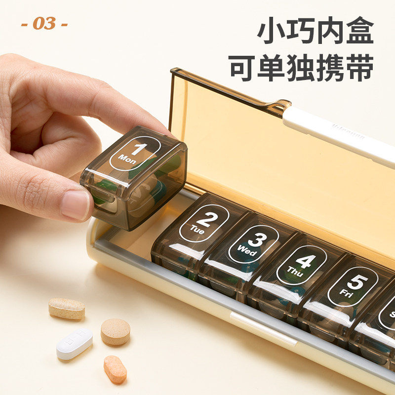 药盒一周七天 盒每日吃药提醒随身药物收纳装 药盒便携式 药品分装
