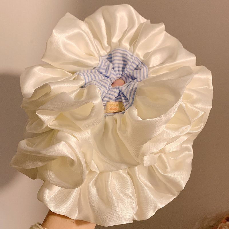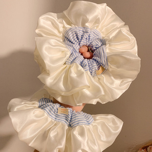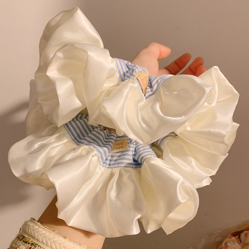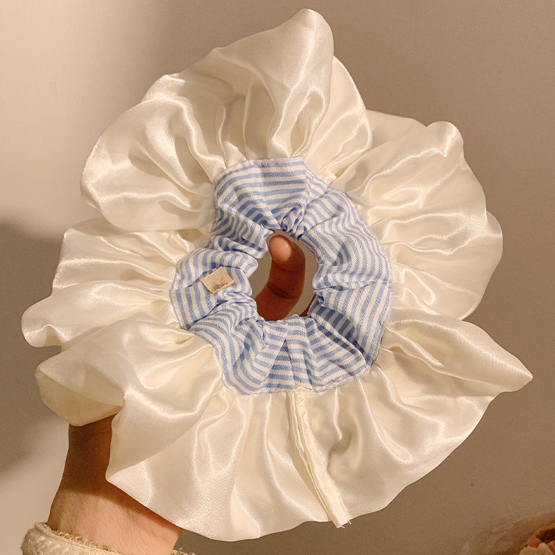 韩系超大号蓝色条纹缎面大肠发圈女生高级感慵懒风丸子头发饰头绳