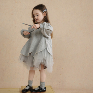 宝宝幼儿园秋季 百搭卫衣拼接蓬蓬纱裙允儿妈女童春夏洋气连衣裙潮