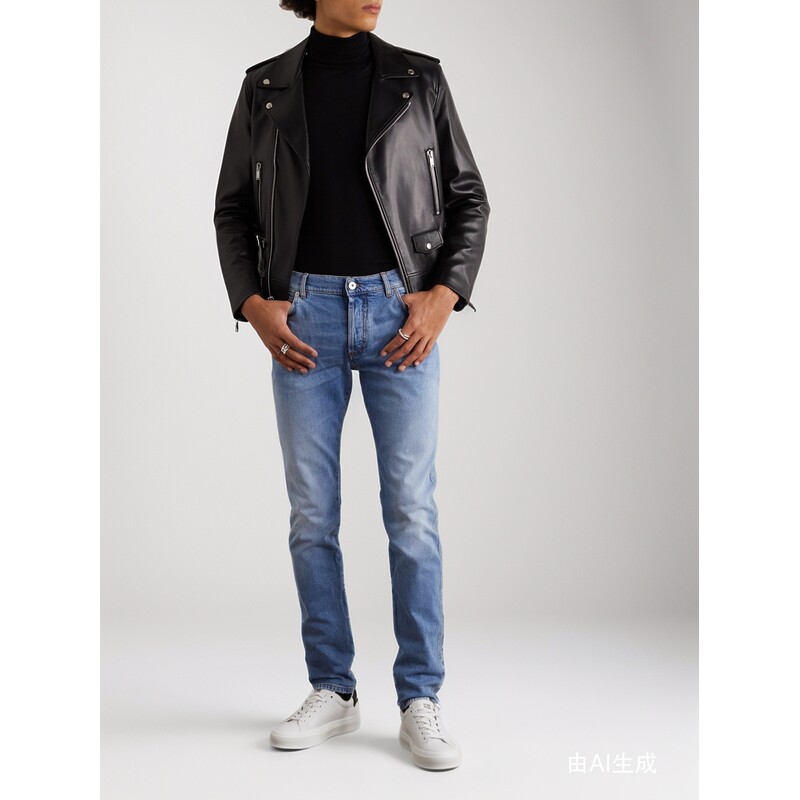 男复古弹力窄腿仿旧蓝色牛仔裤 BALMAIN 折扣