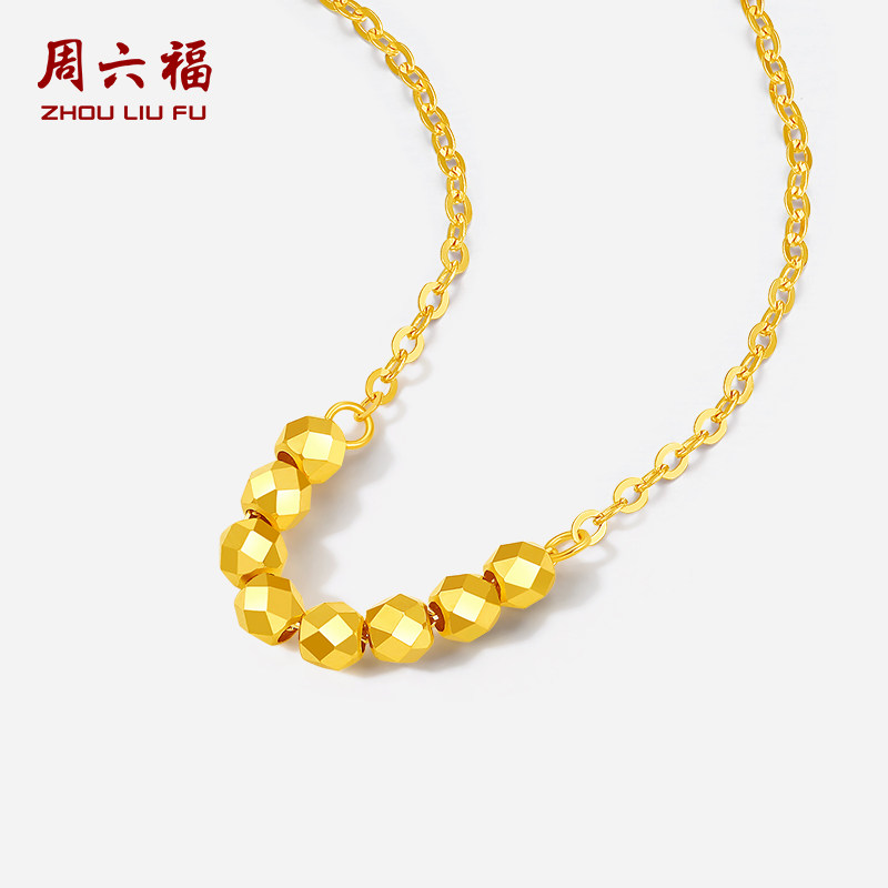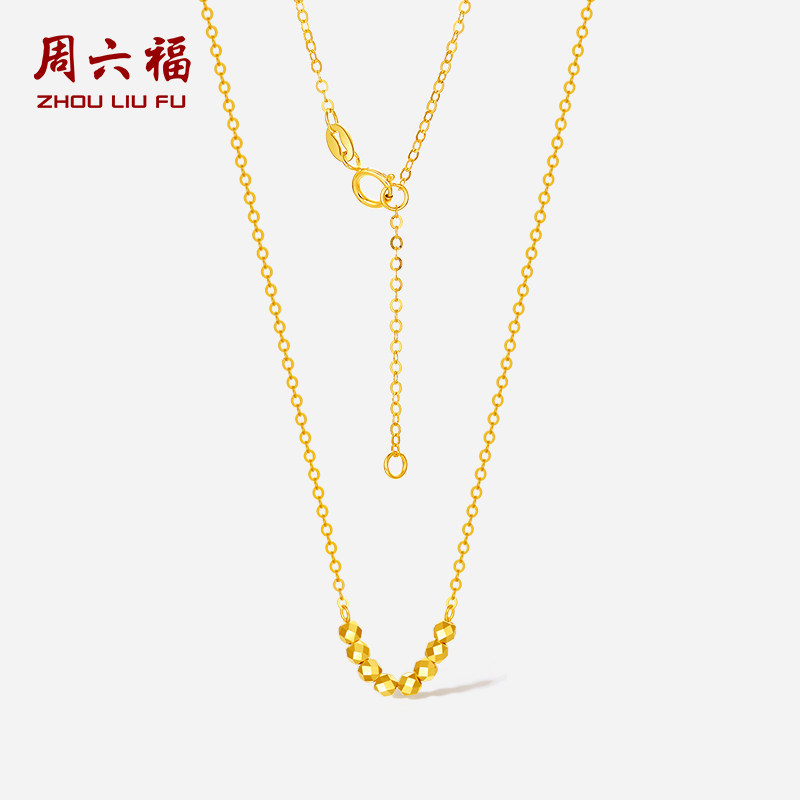 周六福黄18K金项链女金珠链坠多彩金Au750时尚 节日礼物送女友