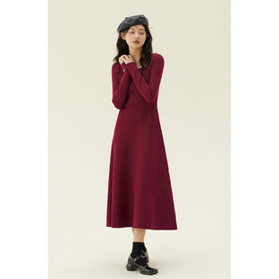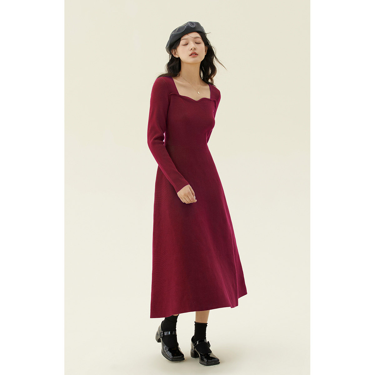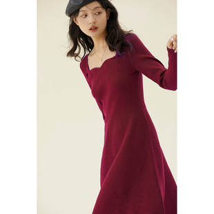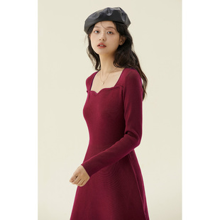 针织连衣裙修身 one 方领长袖 冬装 内搭打底裙小红裙高级感 more时尚