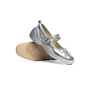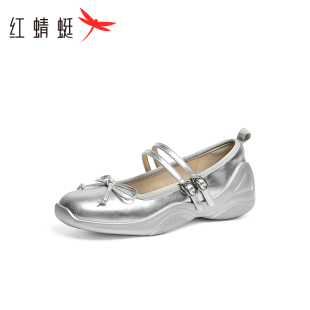 子超火增高软底芭蕾单鞋 红蜻蜓银色运动玛丽珍女鞋 厚底鞋 法式 新款