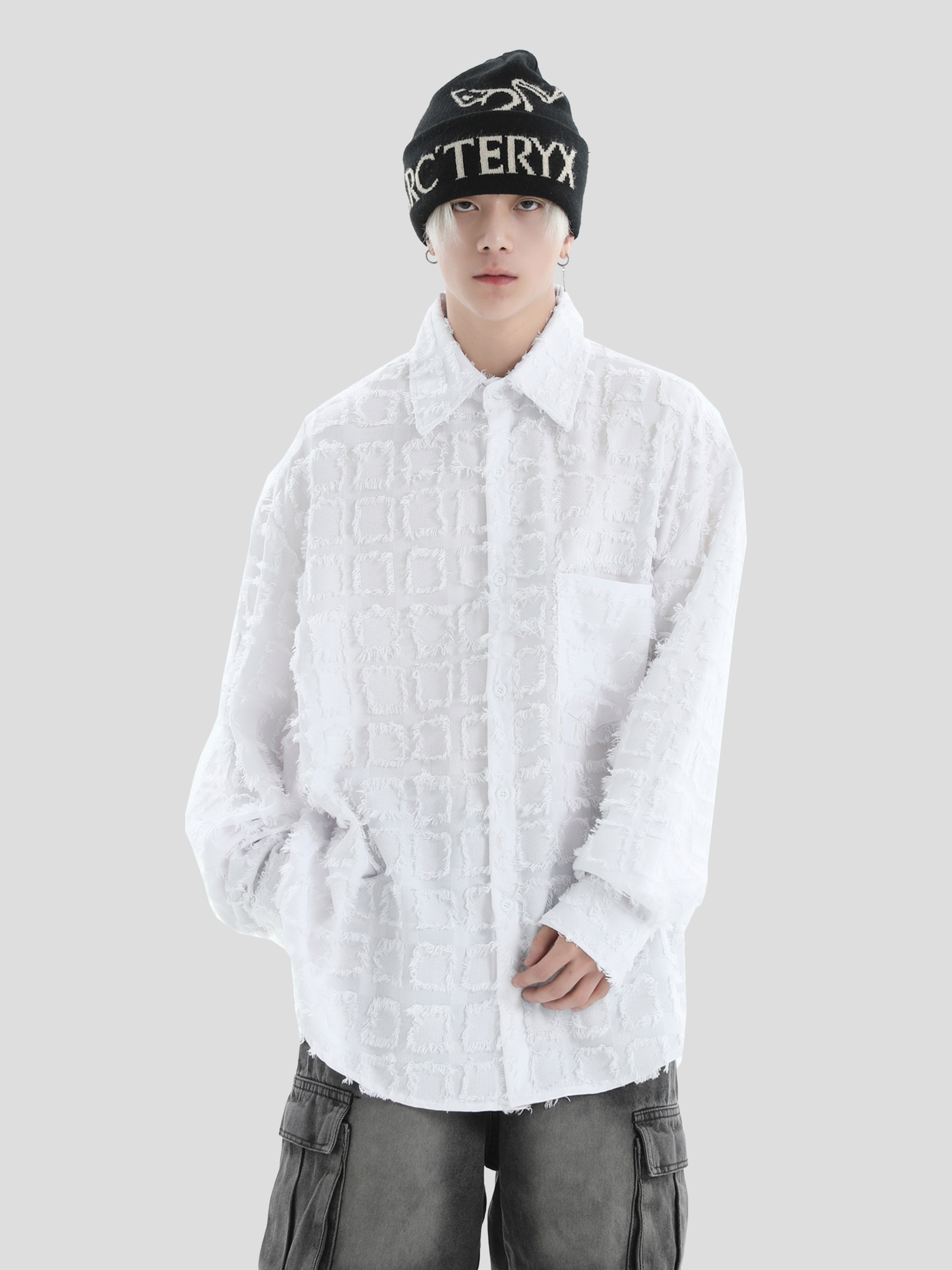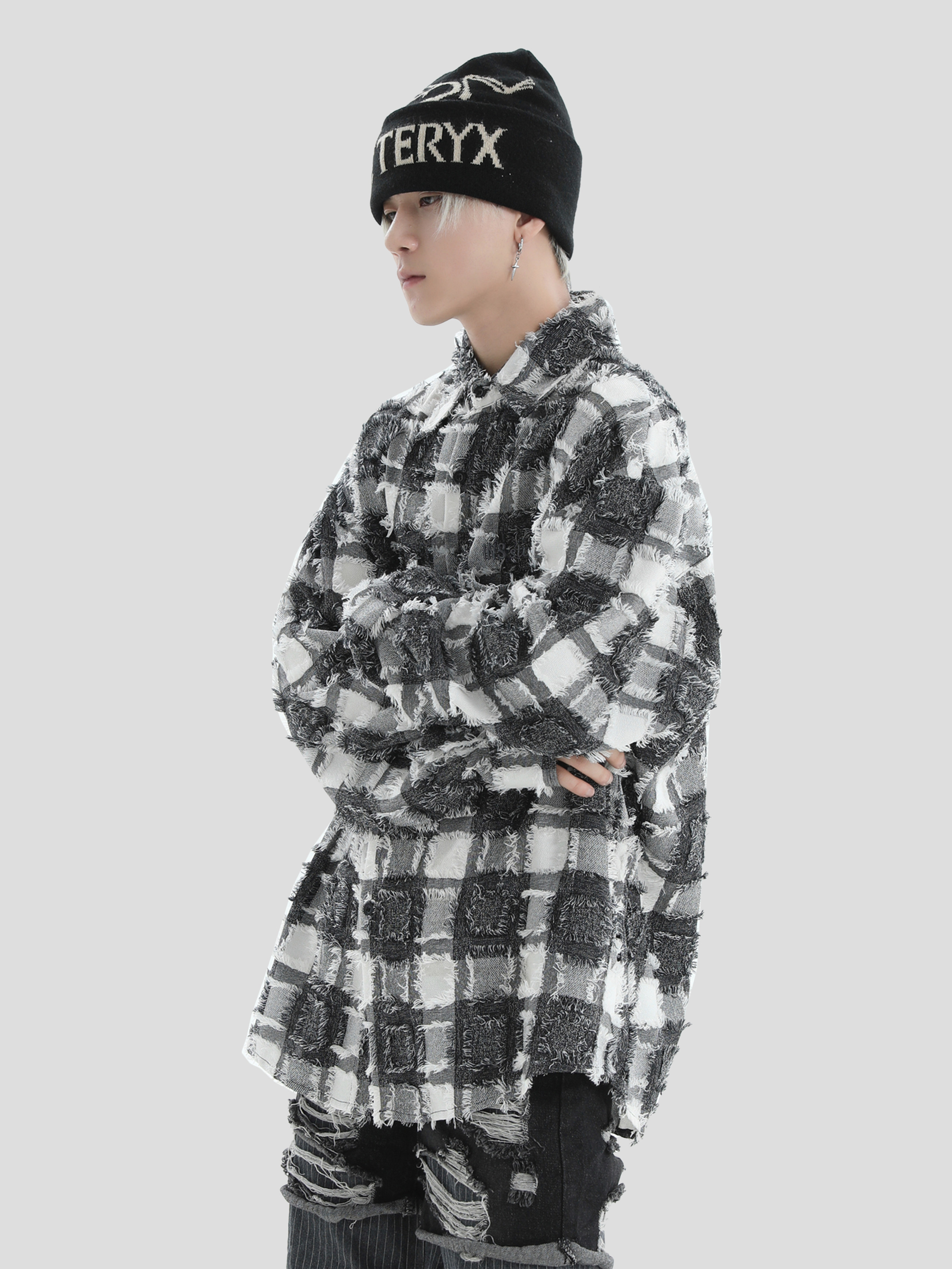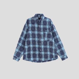 宽松长袖 小logo格子流苏衬衫 衬衣外套 国潮牌情侣美式 INSstudios