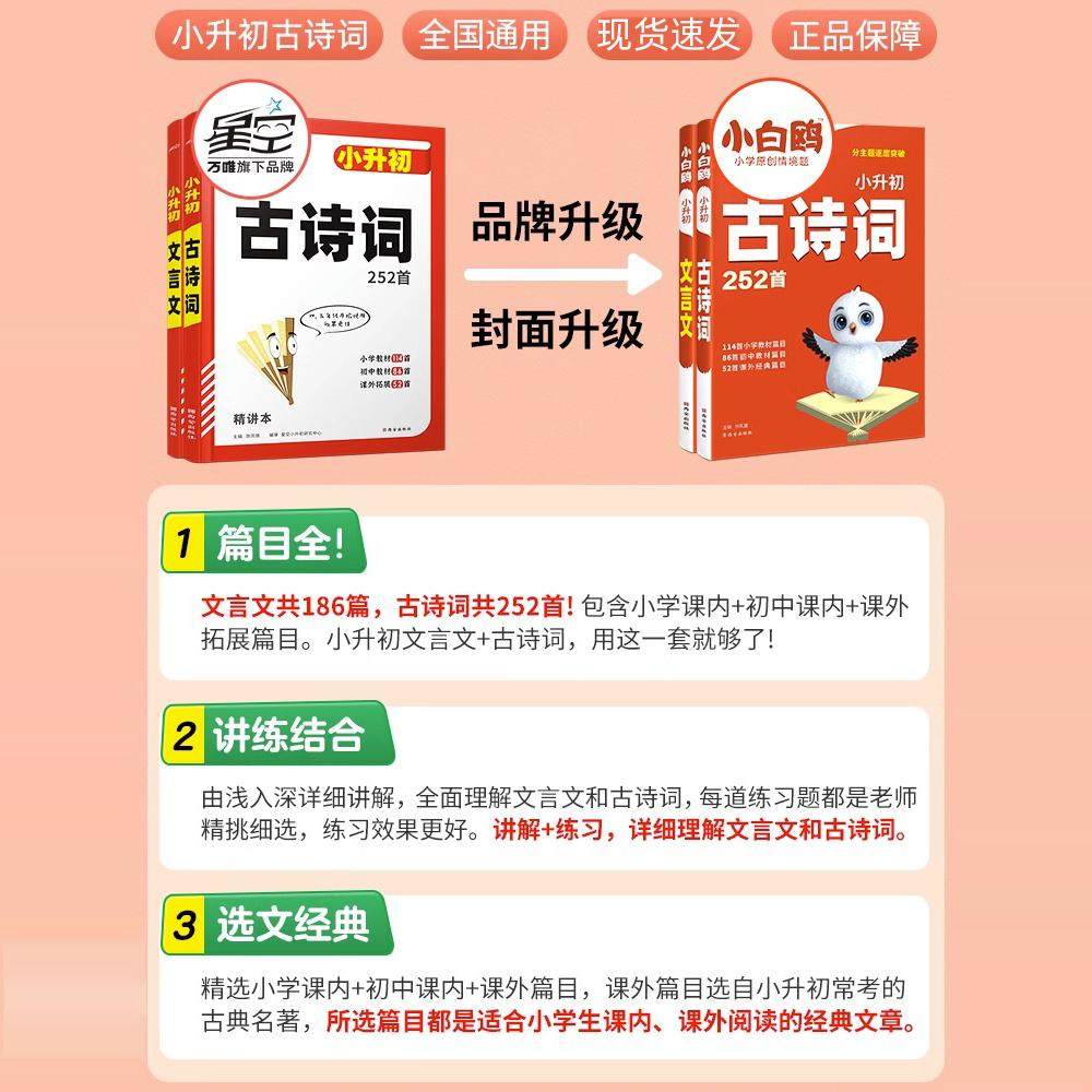 2024旧版 现货原星空小升初 小白鸥小升初文言文186篇古诗词252首满分作文易错题完形填空阅读理解正版