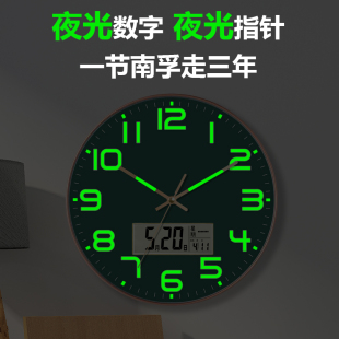 夜光挂钟时尚 卧室创意静音钟表客厅石英挂钟家用现代简约轻奢时钟