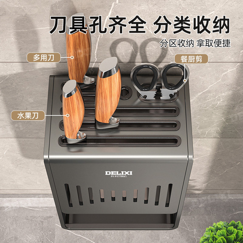 德力西刀架置物架厨房家用壁挂式 多功能菜刀架免打孔刀具收纳架子