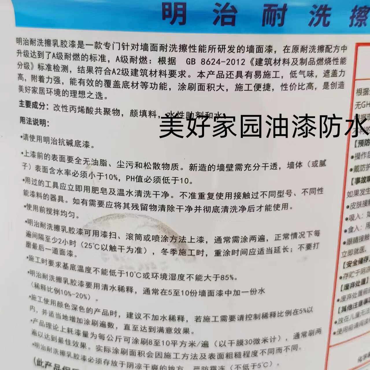 明治耐洗擦乳胶漆白色哑光内墙漆环保墙面漆家用防霉粉刷油漆涂料