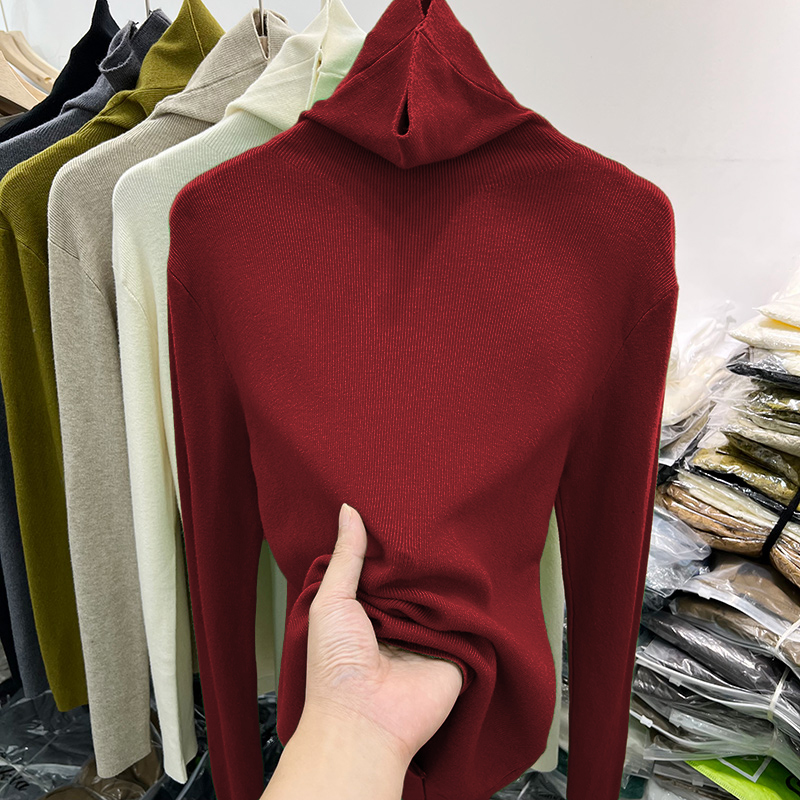 毛衣 内搭打底衫 堆堆领高领软糯羊绒针织衫 女绿色上衣2023秋冬新款