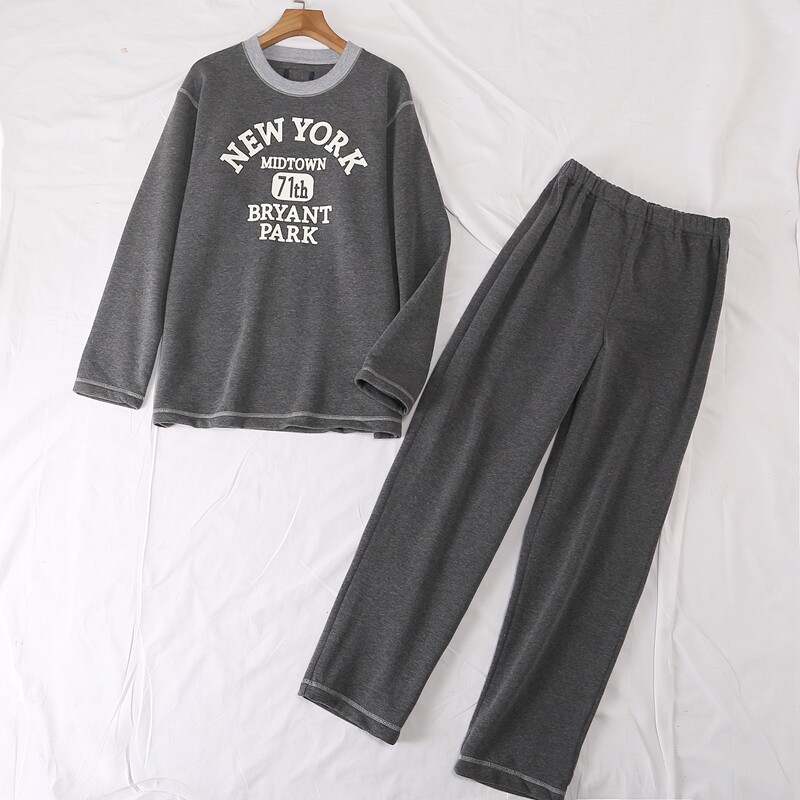 男女20408 套装 日单秋冬新简单休闲保暖字母长袖 加绒加厚睡衣睡裤