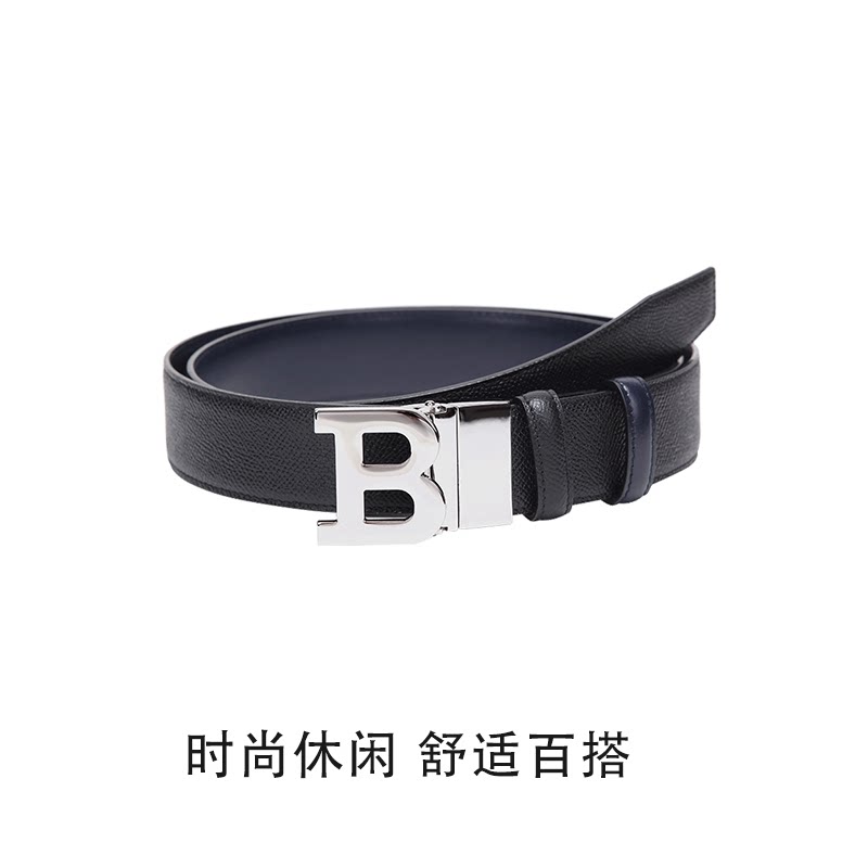 巴利 B字金属扣男士 自营 BUCKLE BALLY 牛皮腰带皮带
