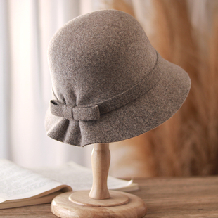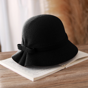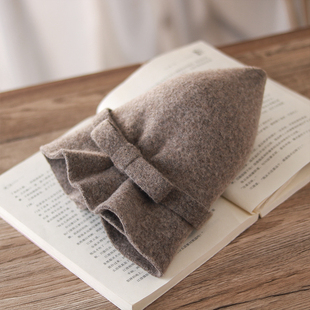 羊毛渔夫帽女秋冬偏软帽子可折叠韩版 蝴蝶结优雅网红盆帽 百搭时尚