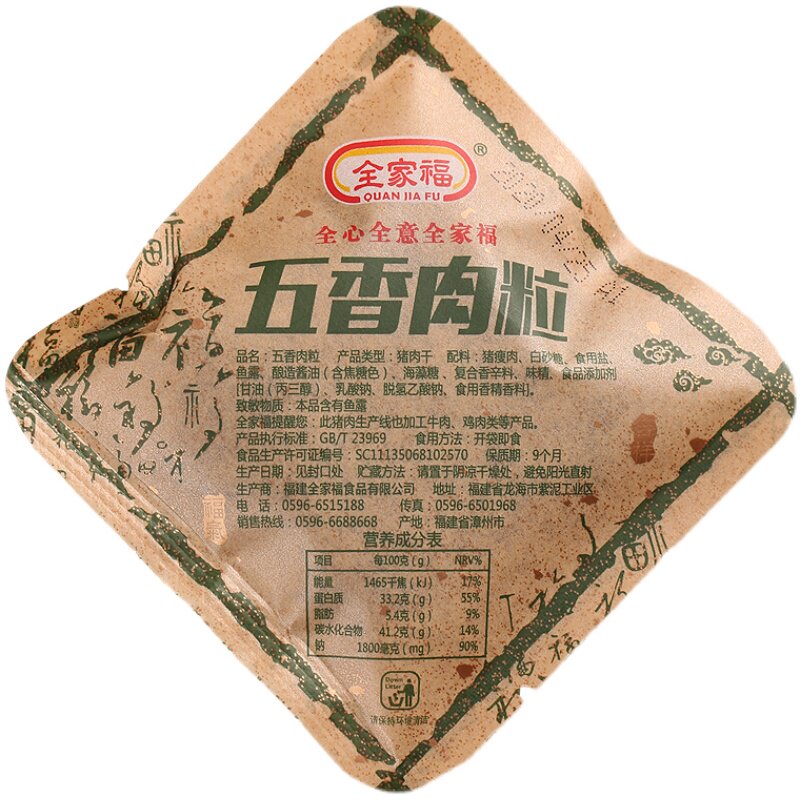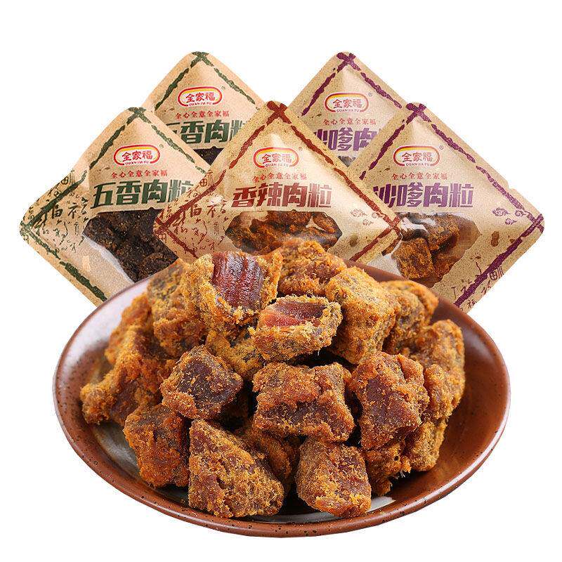 热卖 全家福猪肉粒猪肉条250g香辣五香沙嗲酱香肉粒猪肉干网红零食