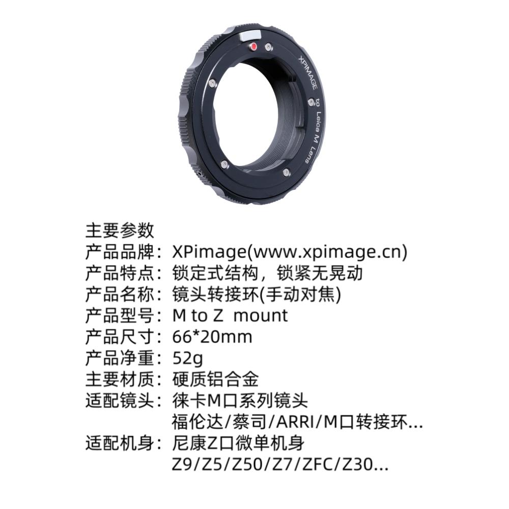 XPimage适用于徕卡M镜头转接尼康Z卡口转接环 Z5Z6IIZ7IIZ9Z50ZFC