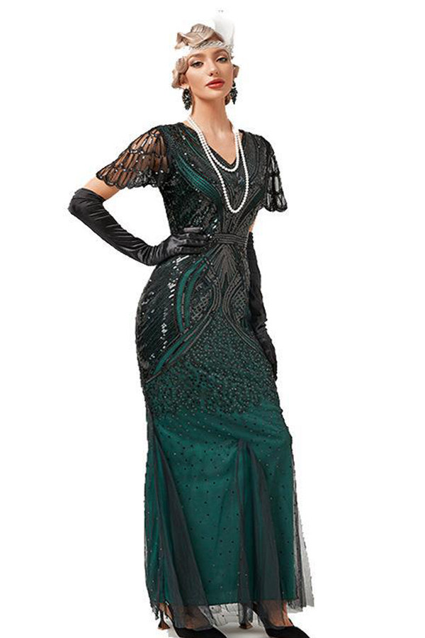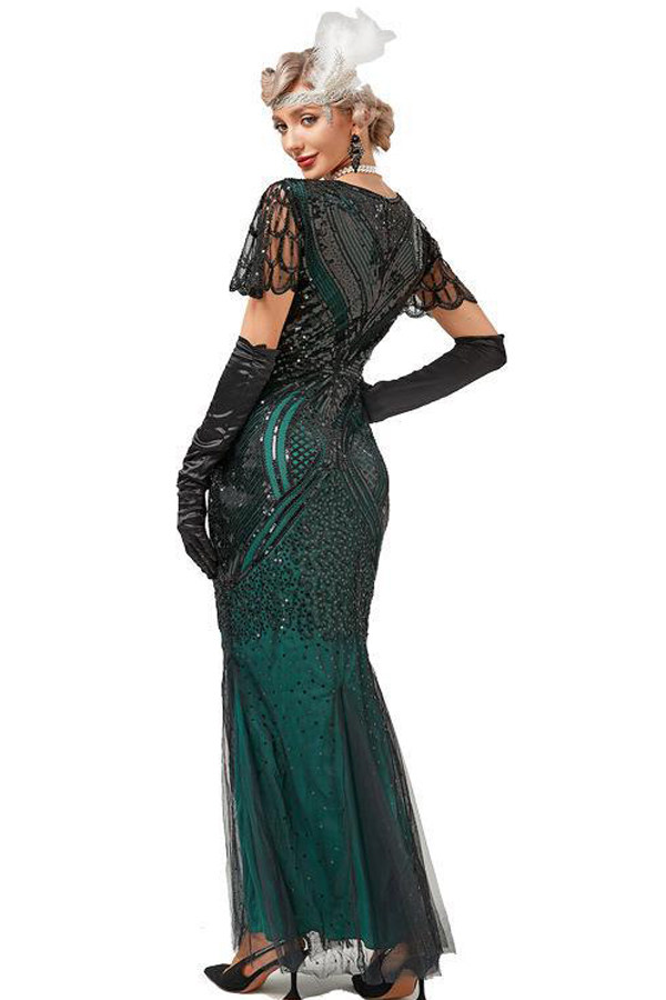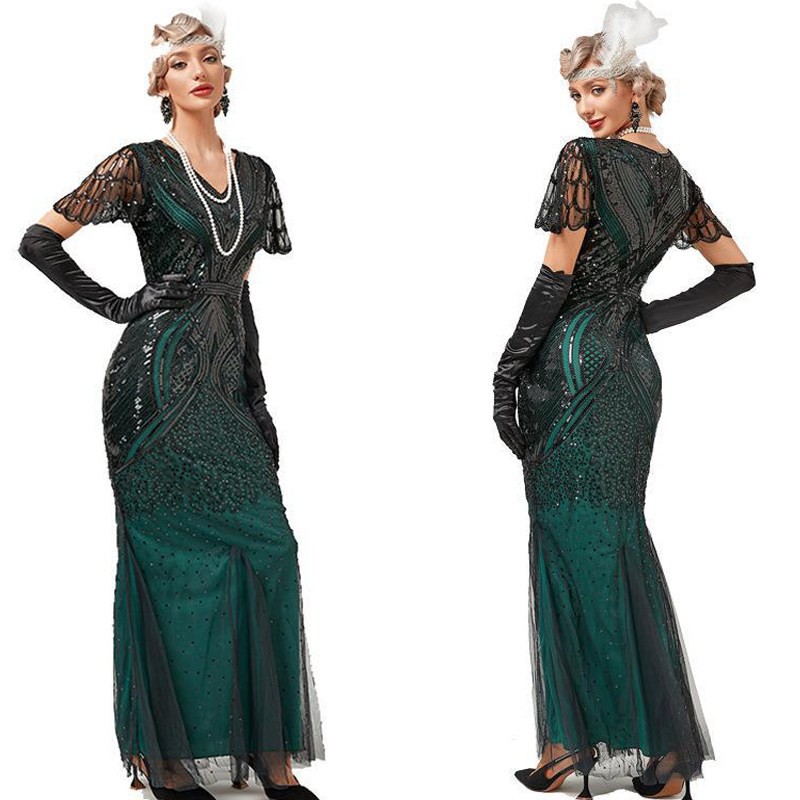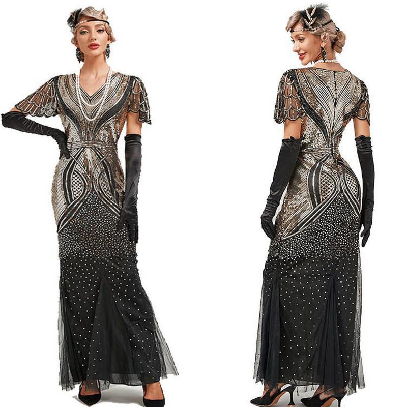 Evening Gown Sequin Flapper Maxi 1920s Beaded Dresses Dress