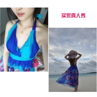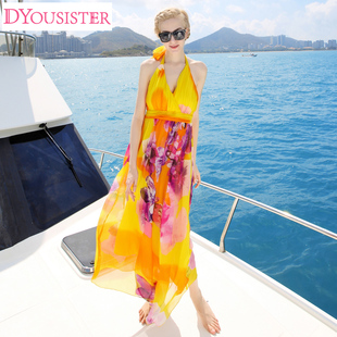 dyousister波西米亚沙滩裙女夏新款 真丝连衣裙 海边度假挂脖中长款