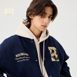 秋冬棒球衫 美式 夹克 」RIC撕裂笑脸棒球服外套情侣装 「魏哲鸣同款