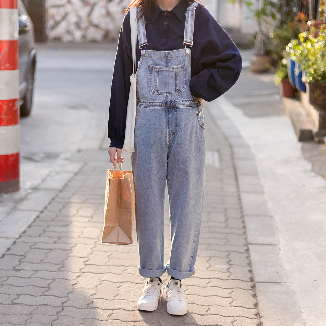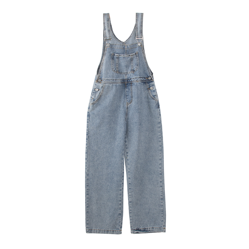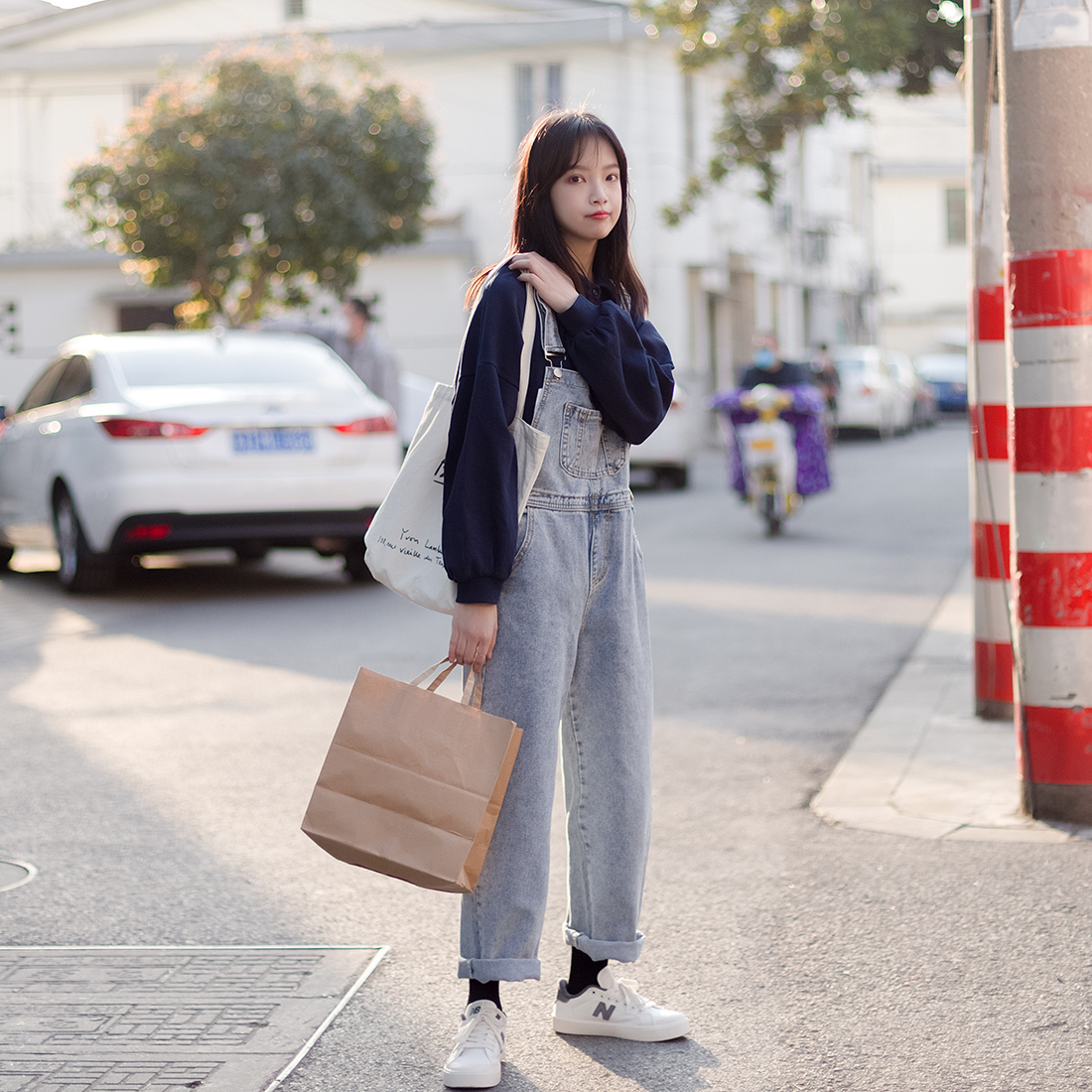 设计感小众复古显瘦连体裤 直筒女宽松秋季 日系牛仔背带裤 艺野系