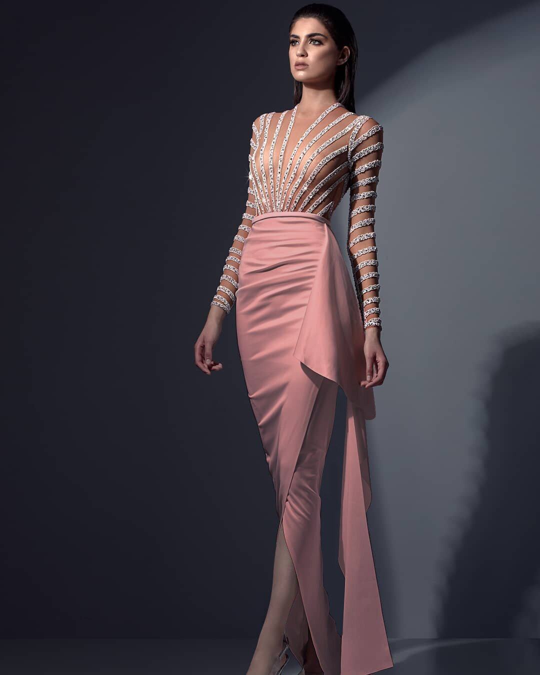 Women Evening Dresses Luxury Mermaid Sleeves Sequins Long