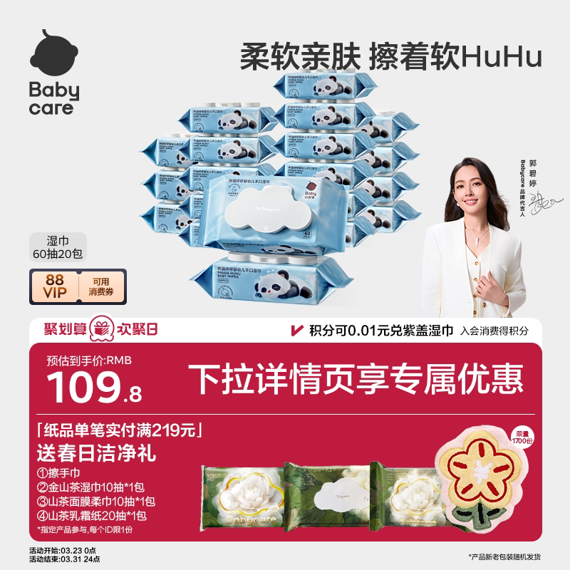 babycare湿巾熊猫湿纸巾婴儿便携手口专用宝宝7抽 详情领优惠