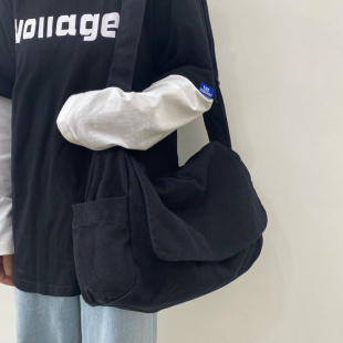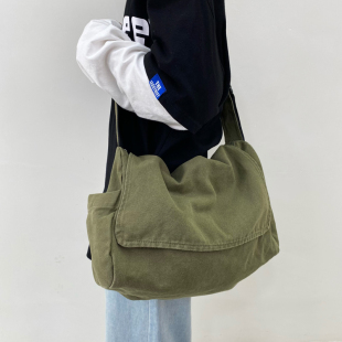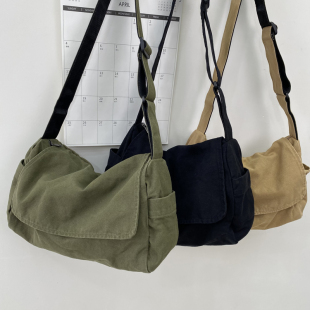 日系水洗帆布包慵懒风垂感斜挎包女文艺上课 差包休闲单肩包男 包邮