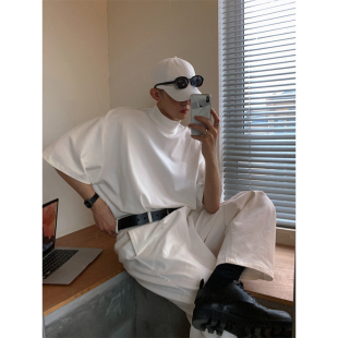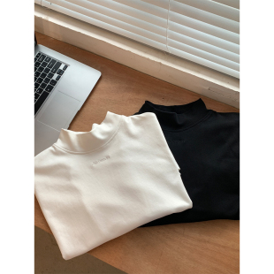 黑白宽松基础款 夏季 字母刺绣T恤 内搭小高领短袖 Aurocean