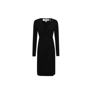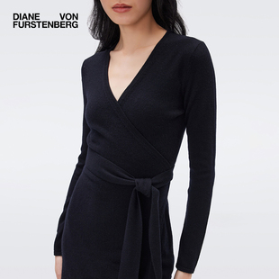 毛衣裙长袖 DVF女装 羊毛羊绒混纺针织裹身连衣裙 小黑裙