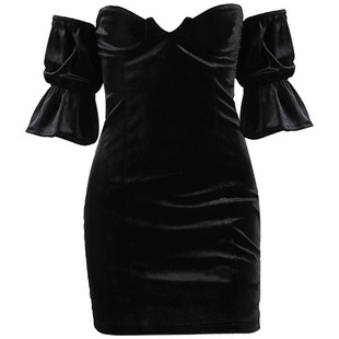 露肩扭结灯笼袖 包臀连衣裙 外套女 修身 韩国chic气质性感立领无袖