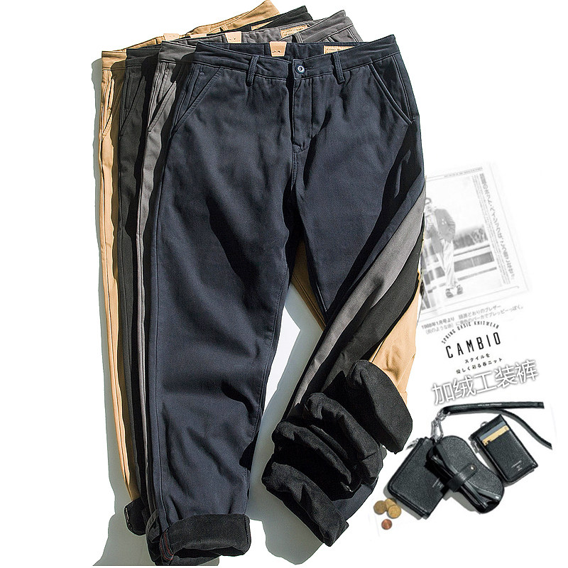 潮牌商务小直筒加绒休闲裤 新款 美式 长裤 秋冬日系纯棉水洗工装