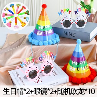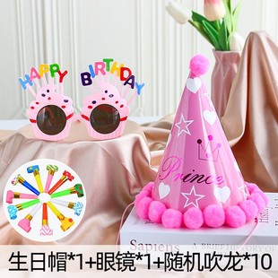 生日派对装 饰场景布置宝宝周岁快乐儿童女孩皇冠蛋糕帽子头饰眼镜