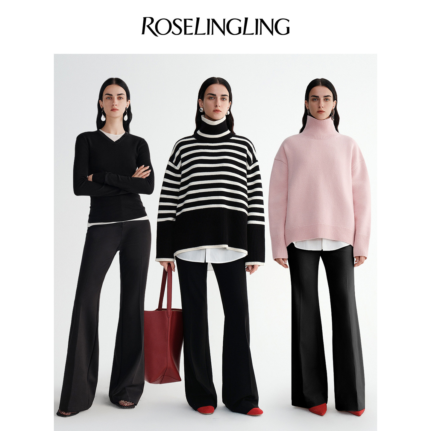 裤 ROSELINGLING热销10W 西装 高腰显瘦黑色微喇女休闲裤 过冬神裤