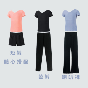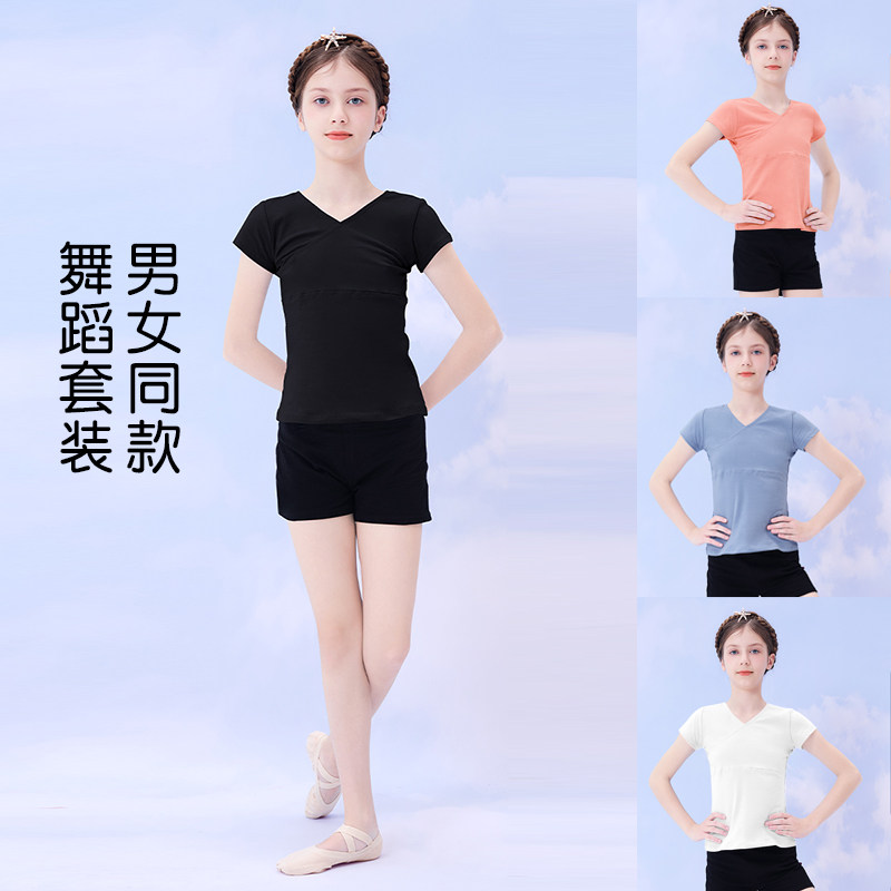 儿童舞蹈T恤打底衫 跳舞上衣春夏芭蕾舞服中国舞练功服 女童v领短袖