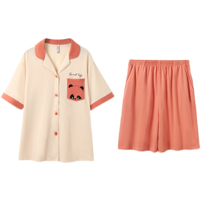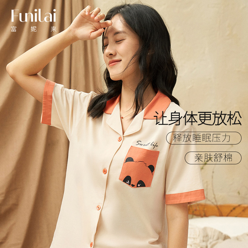 富妮来情侣纯棉短袖 简约睡衣可爱萌宠印花青年家居服夏 翻领开衫