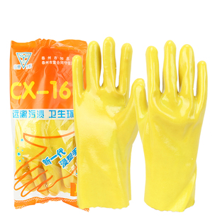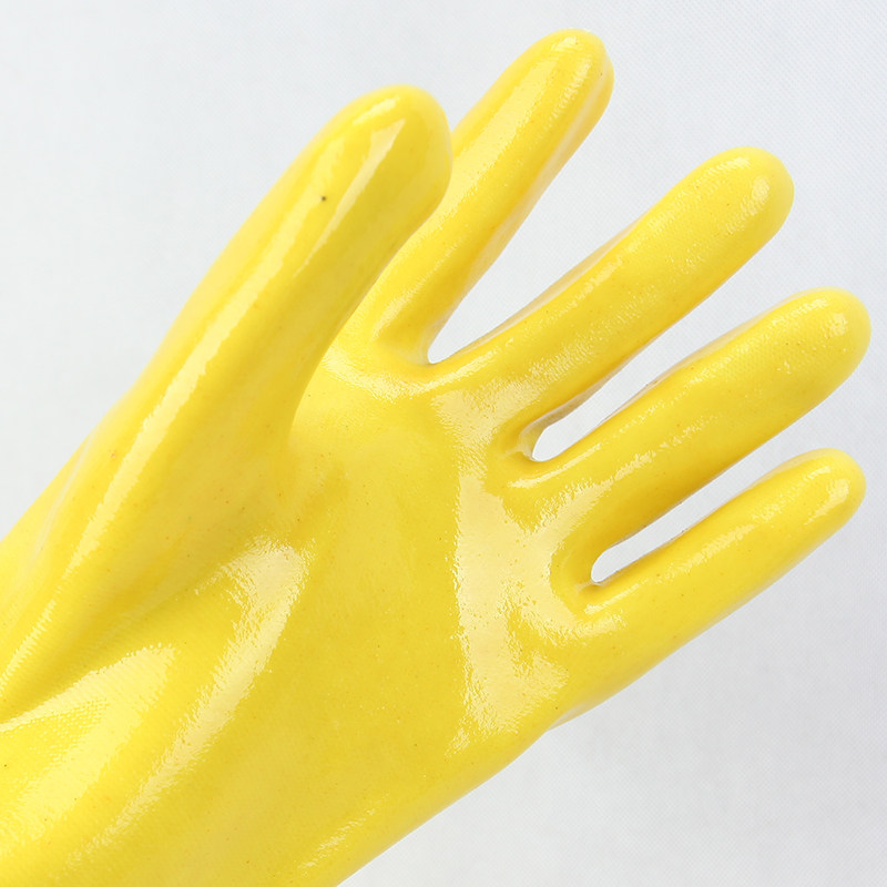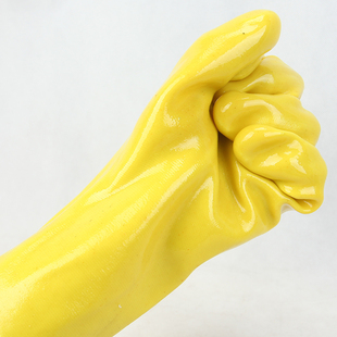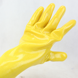 称星黄色全浸塑光面防水耐油耐酸碱耐磨化工PVC浸胶加厚劳保手套