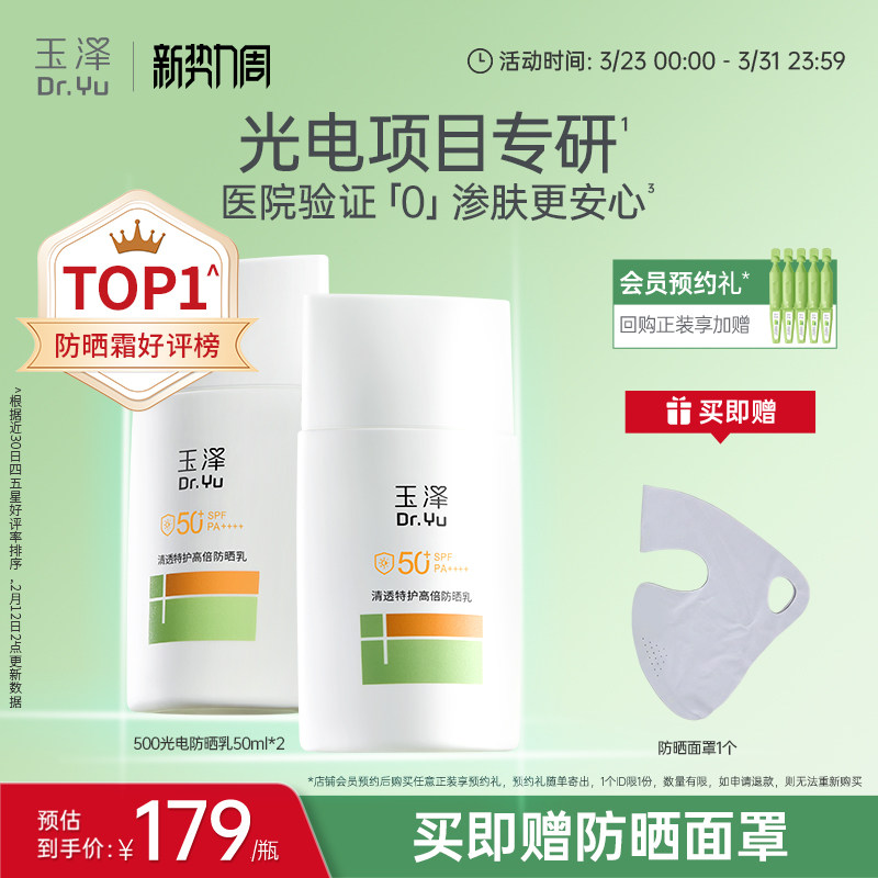 玉泽500光电防晒乳敏感肌大分子高倍防晒霜户外通勤清透青蒿舒缓
