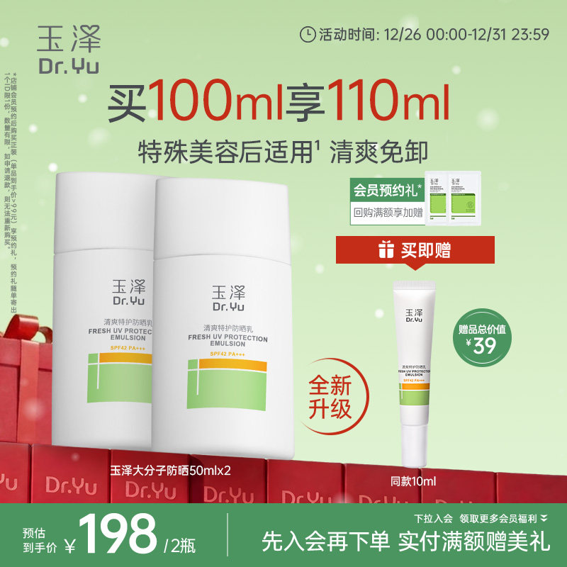 玉泽大分子防晒霜防晒乳敏感肌通勤清爽特护面部水润轻薄温和免卸