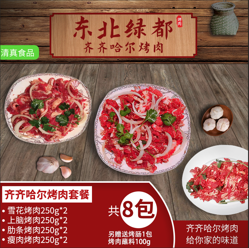 2000g装 包邮 肥瘦相间 顺丰 送烤肠或酸菜 齐齐哈尔烤肉套餐A款