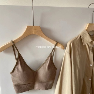 小众设计ins文胸吊带带胸垫女士内衣胸罩纯棉 可外穿吊带背心