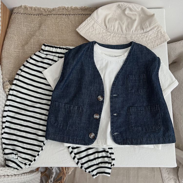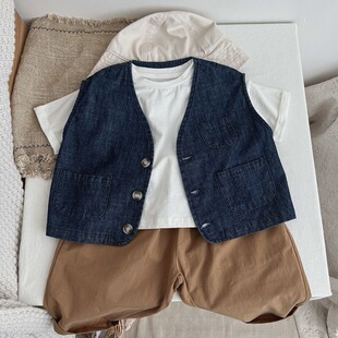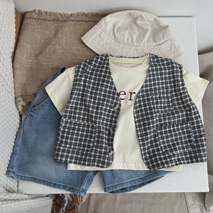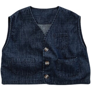 儿童格子马甲韩版 牛仔马甲 森系坎肩背心上衣男女童洋气日系薄款