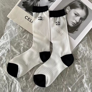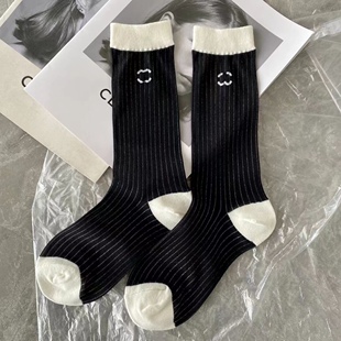 2022夏季 欧货袜子女微闪竖条纹拼色中筒丝袜洋气网红潮袜 新款